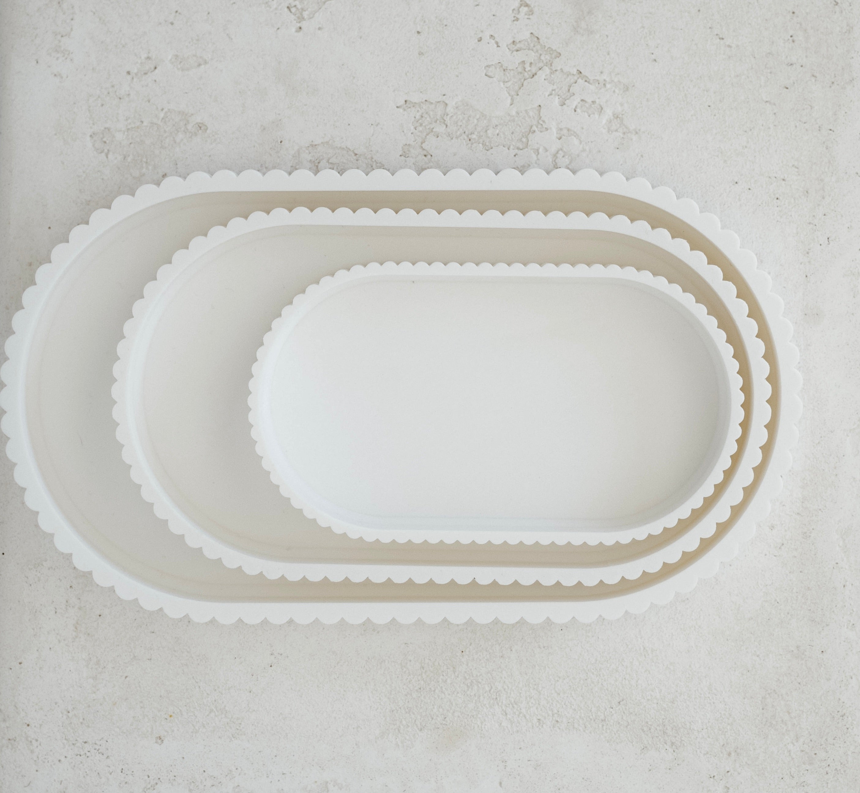 Made from plant-based renewable material, each tray is 3D printed in our Melbourne studio with a matte, tactile finish and signature scalloped edge. Designed to mix and match and coordinate perfectly with our scalloped  bowl set.